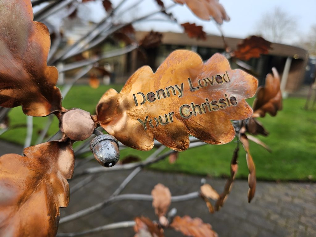 Our Memory Tree offers a beautiful and lasting way to celebrate the life of someone special. Each personalised copper leaf is inscribed with the name of a loved one and forms part of a meaningful piece of art in our hospice garden – a quiet place to pause, reflect and remember. ![]()