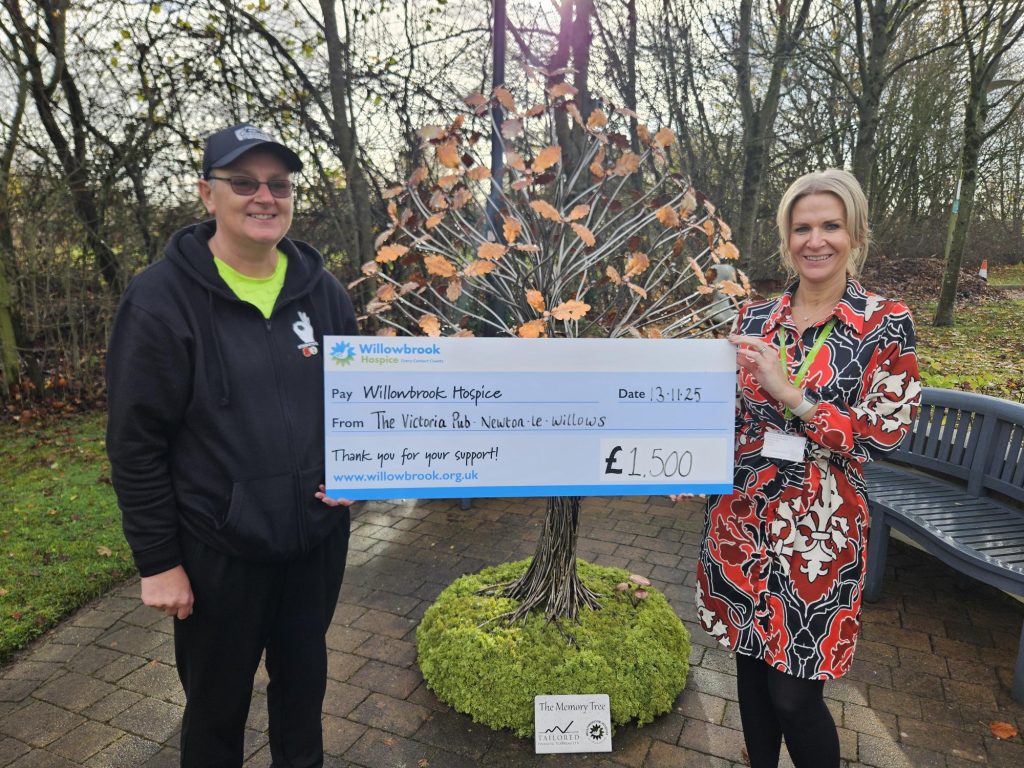 Willowbrook Hospice was delighted to welcome Maria from The Victoria, Newton le Willows, who visited with an incredible donation of £1,500 raised during their Family Fun Day in August!