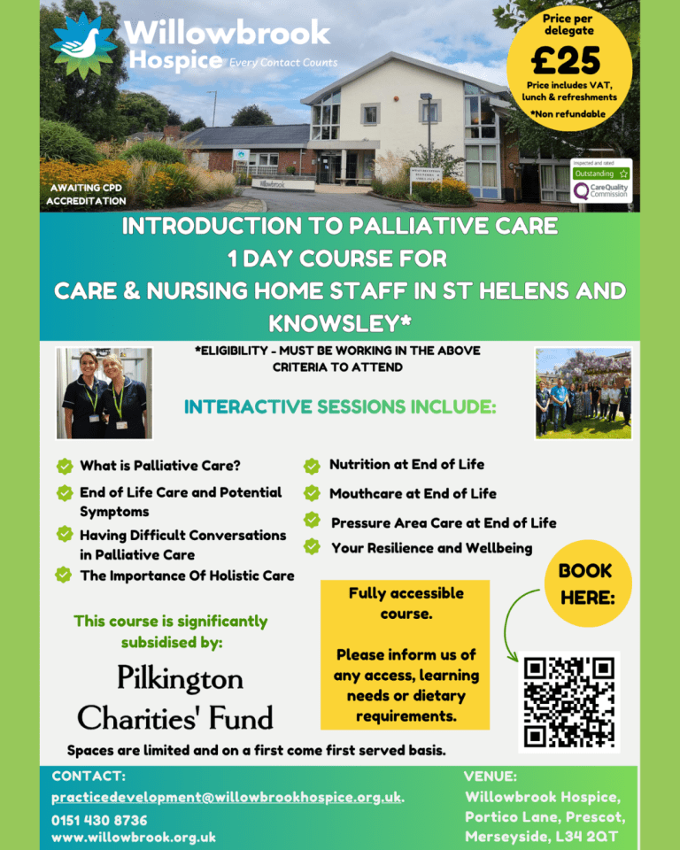 Introduction to Palliative Care – 1 Day Course – Delivered by Willowbrook Hospice